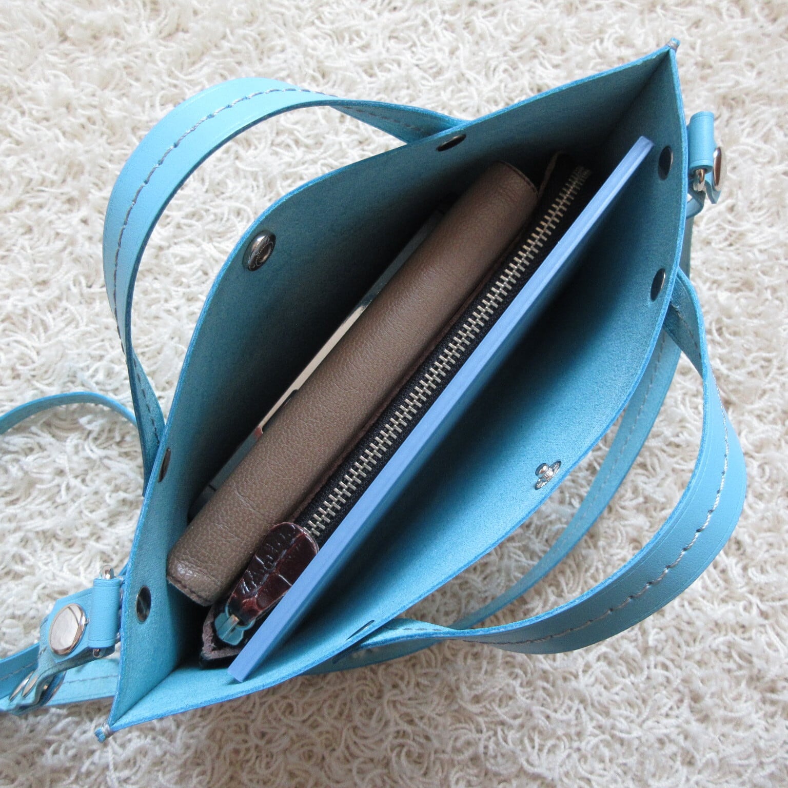 ☆New☆レクタングルサコッシュ♪《牛革》スムースレザー・スカイブルー・0145