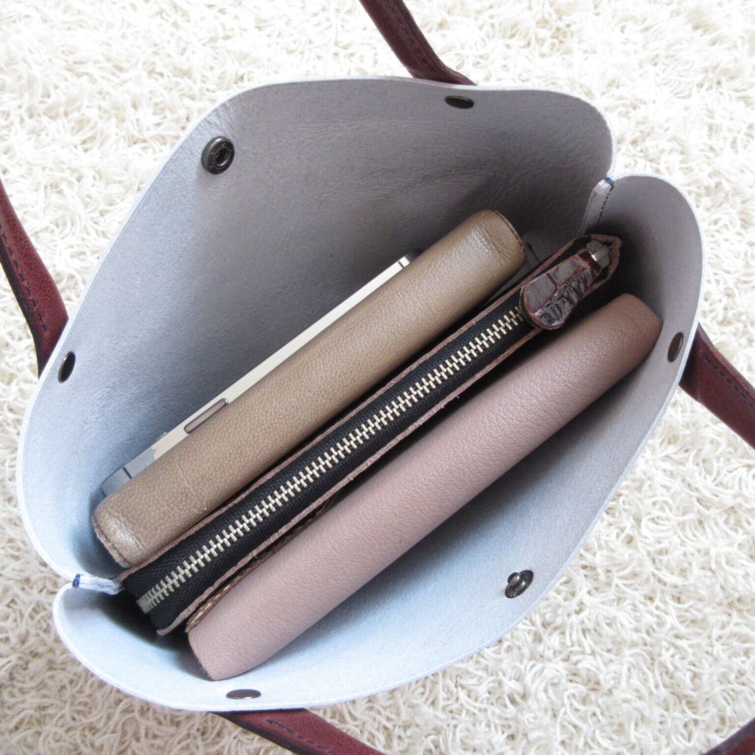 ◎しなやかでしっかりとした持ち心地のスムースレザーのトートです♪