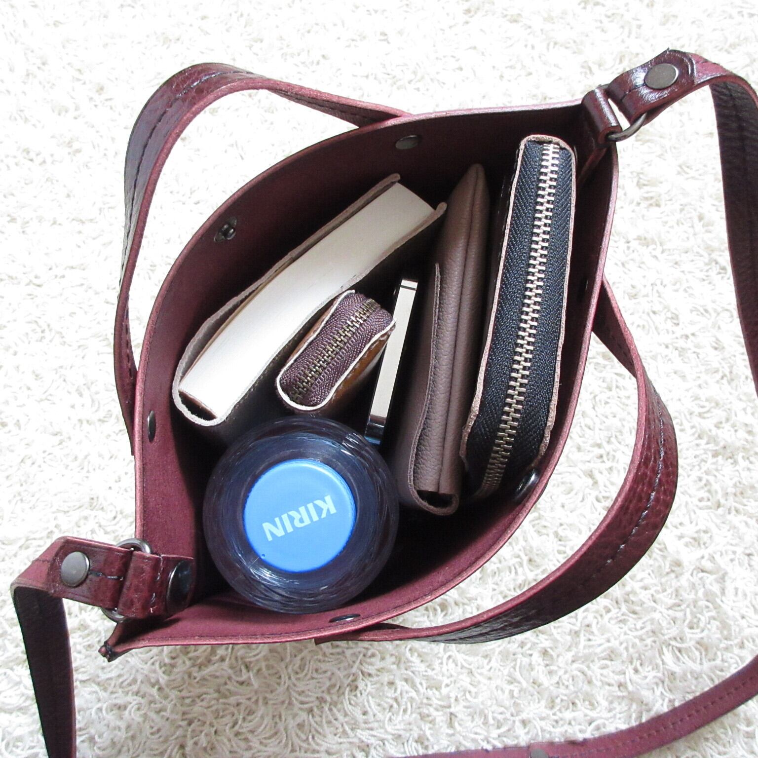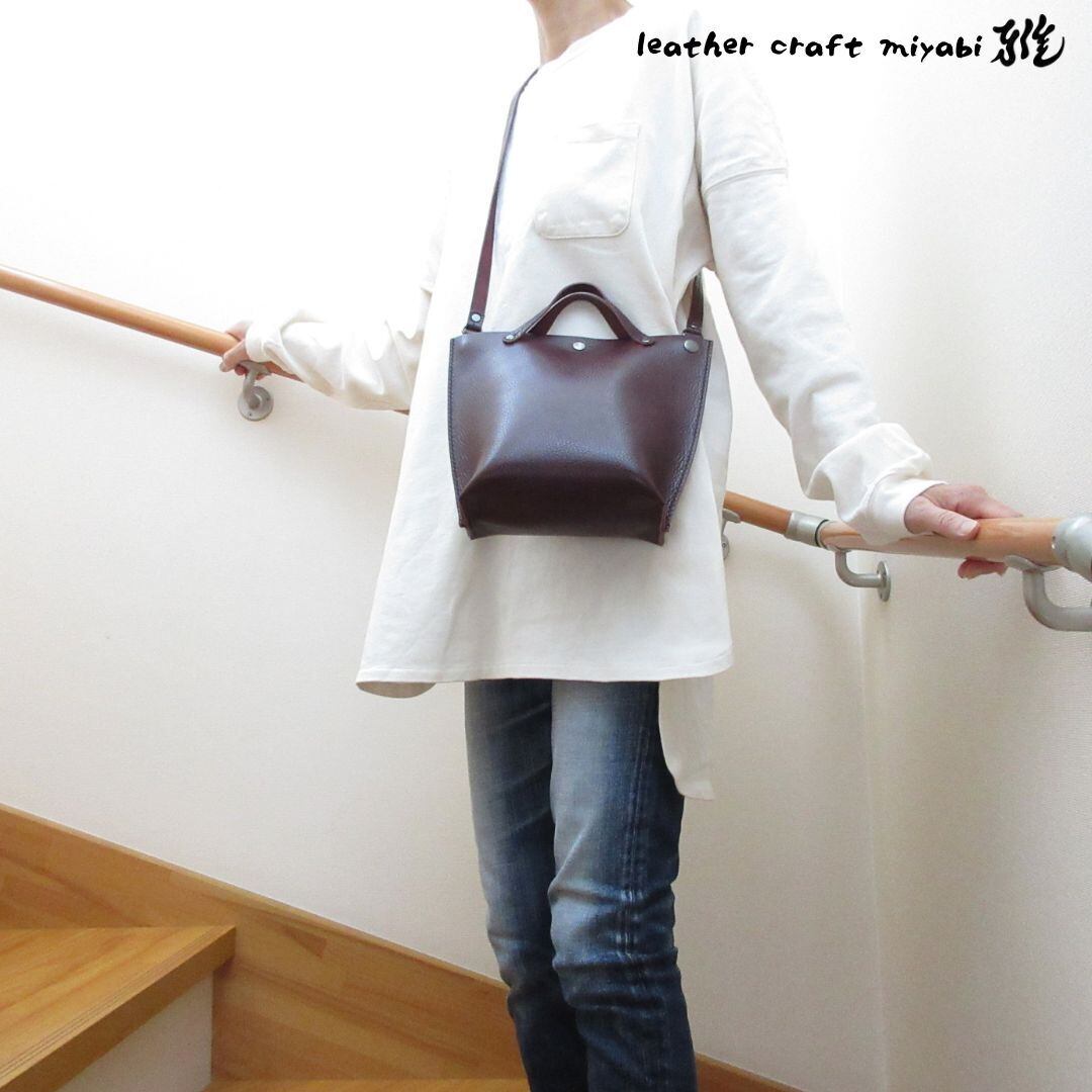 サックっと持てる♪《牛革》2WAYショルダーバッグ・ダークワイン・シュリンク・0139