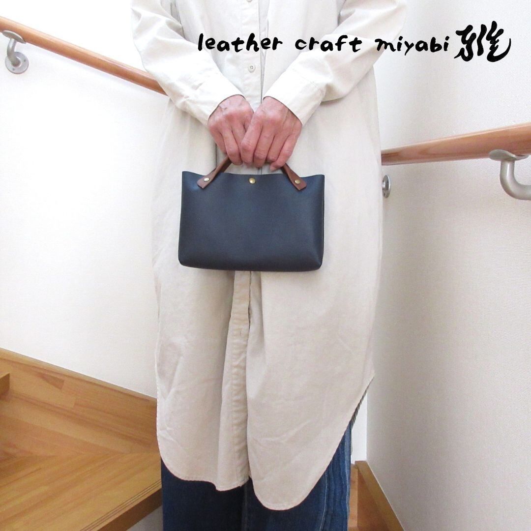 〇シンプルなネイビーにブラウンのハンドルを合わせてシックに仕上げました♪