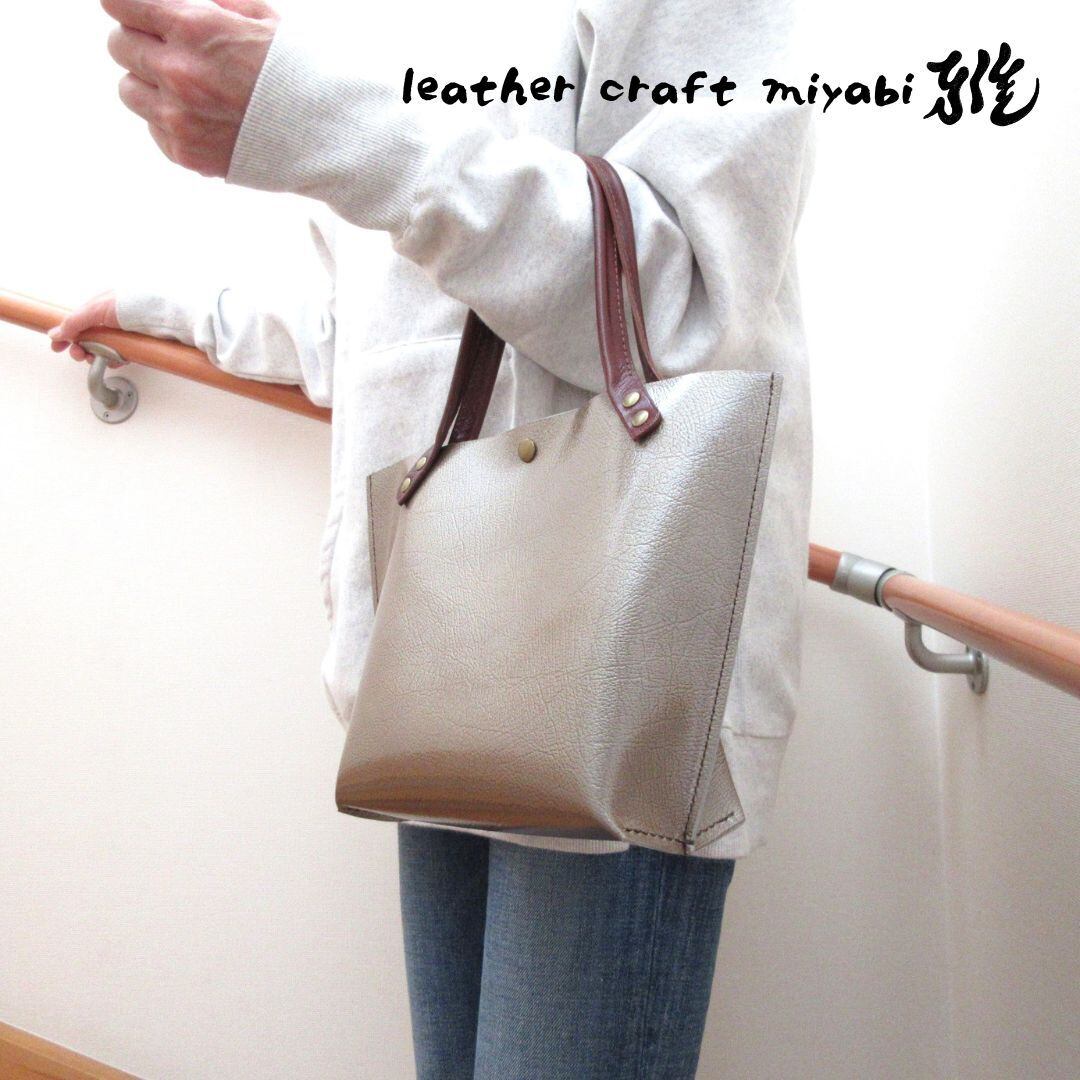 ◎シュリンク模様の深みがあるメタリックベージュのソフトエナメルを使ったしなやかなトートです♪