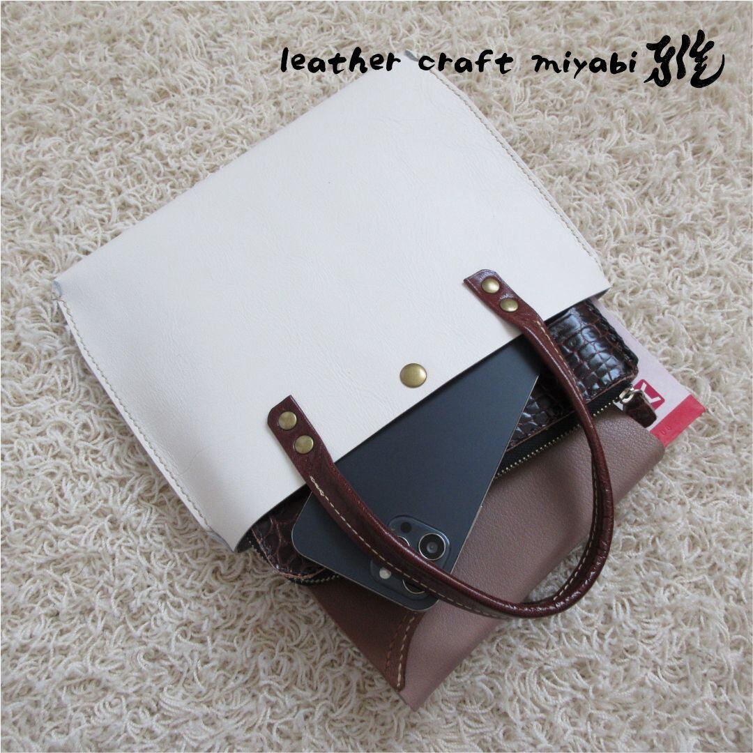 手縫い☆バッグインにもピッタリ♪《牛革》フラットミニマルトート・オフホワイト・0647