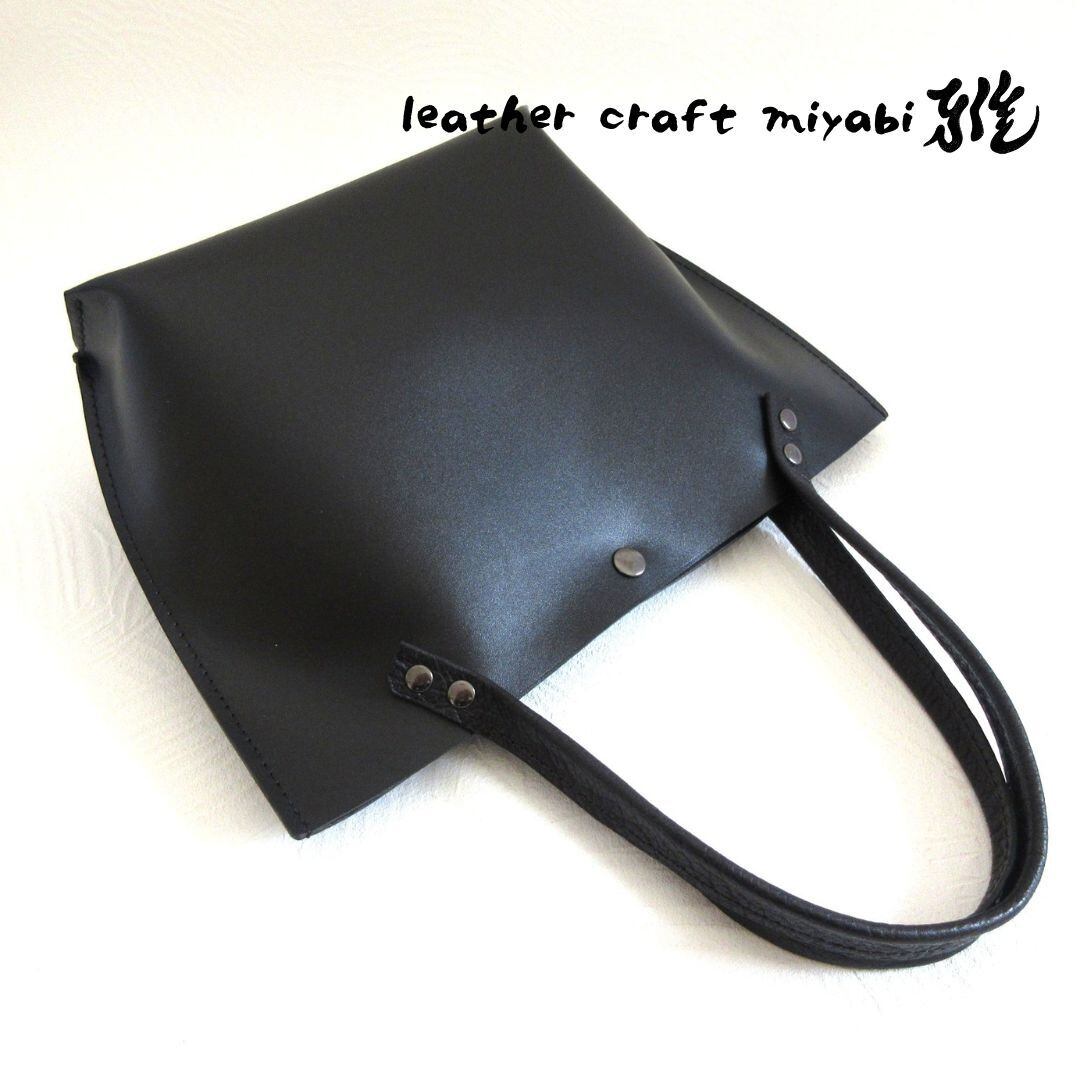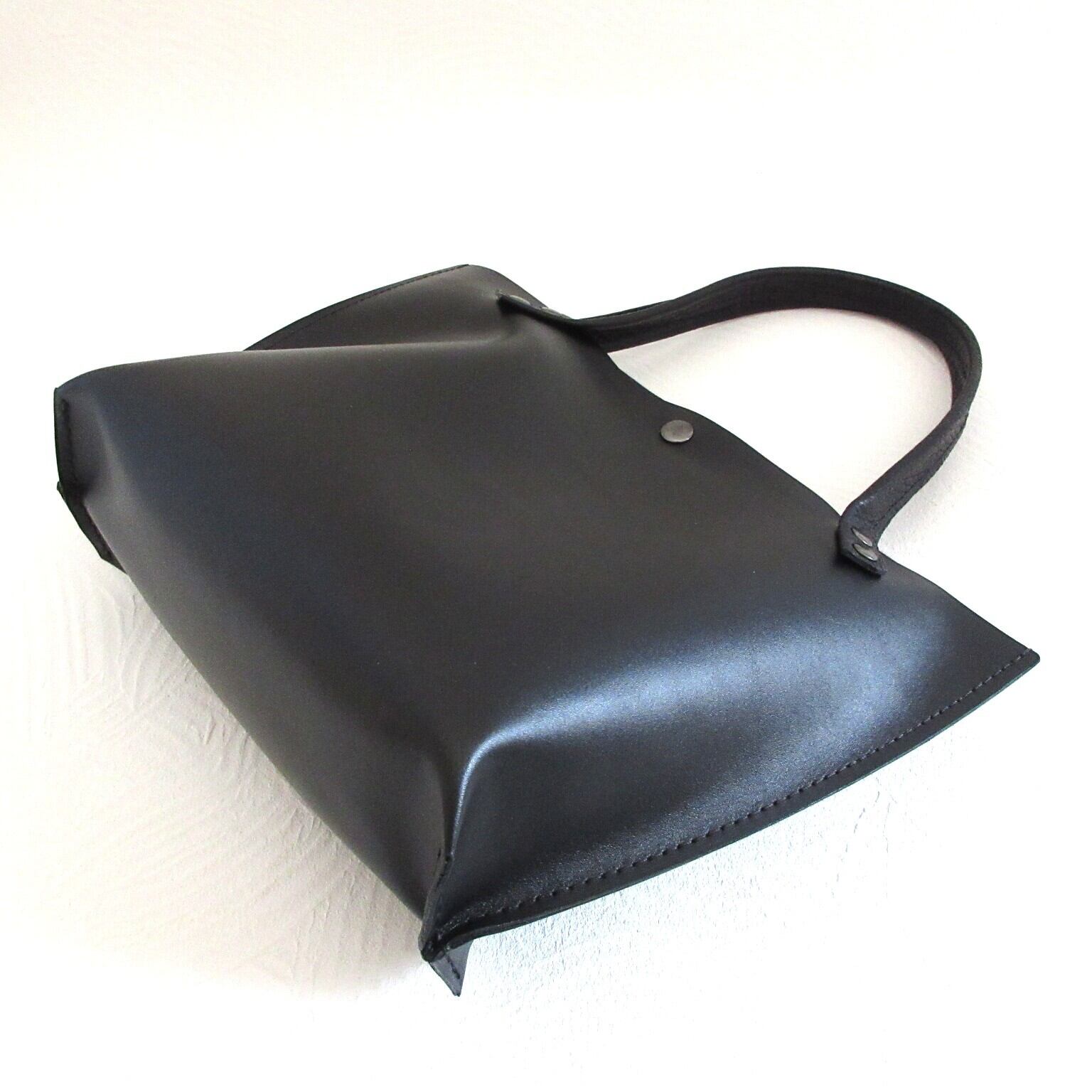 《牛革》ロングハンドル・底マチワイド・一枚革のミニトート・ブラック・スムース・0660