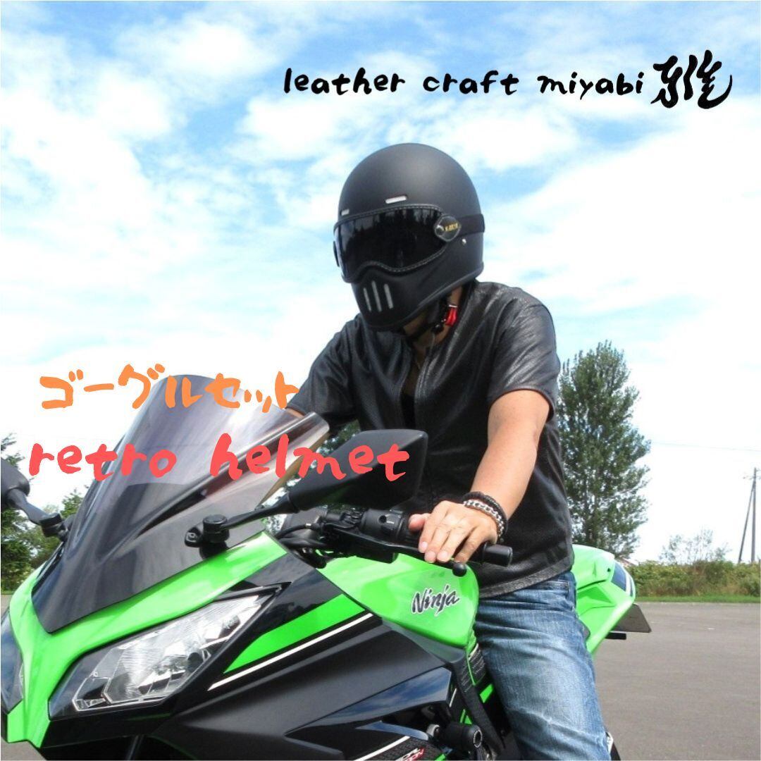 ☆マットブラックのレトロスタイルヘルメットに、スモークタイプのゴーグルを組み合わせたセットのご紹介♪