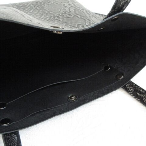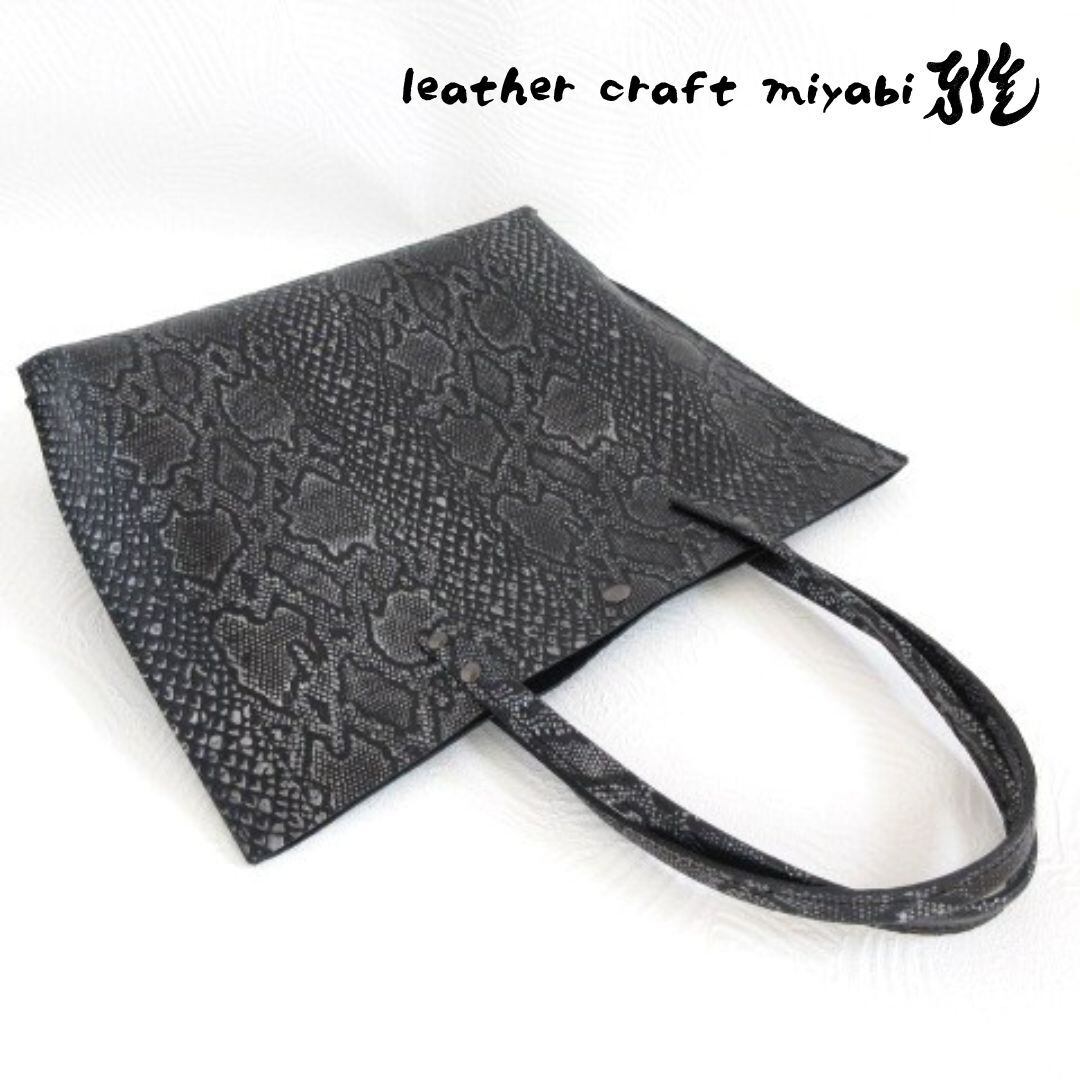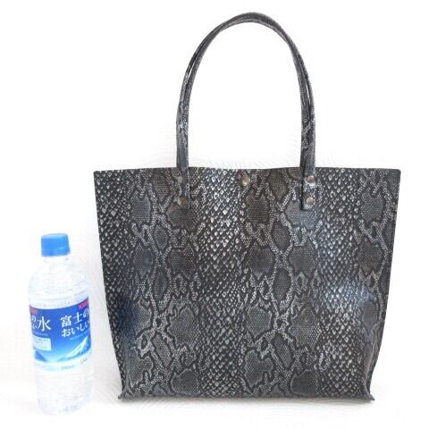 A4対応フラットタイプ♪《牛革》一枚革のミディアムトート・型押しパイソン・ブラック・0286