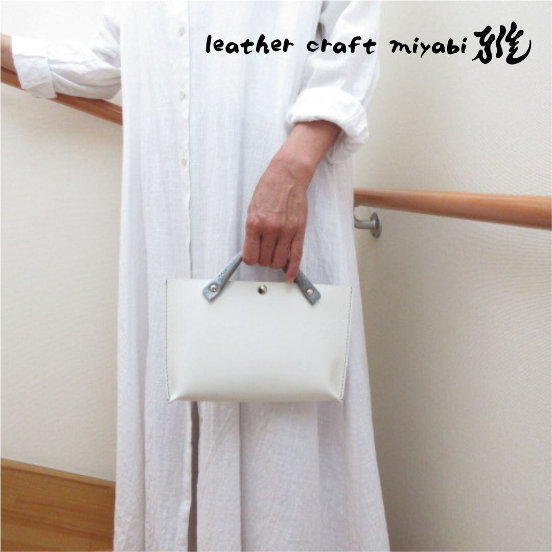 バッグインにも使えて小さくお出掛け♪《牛革》ハンドステッチ・ミニマルトート・ホワイト・0518
