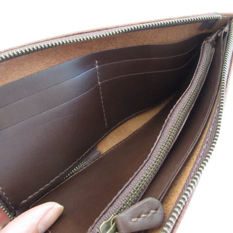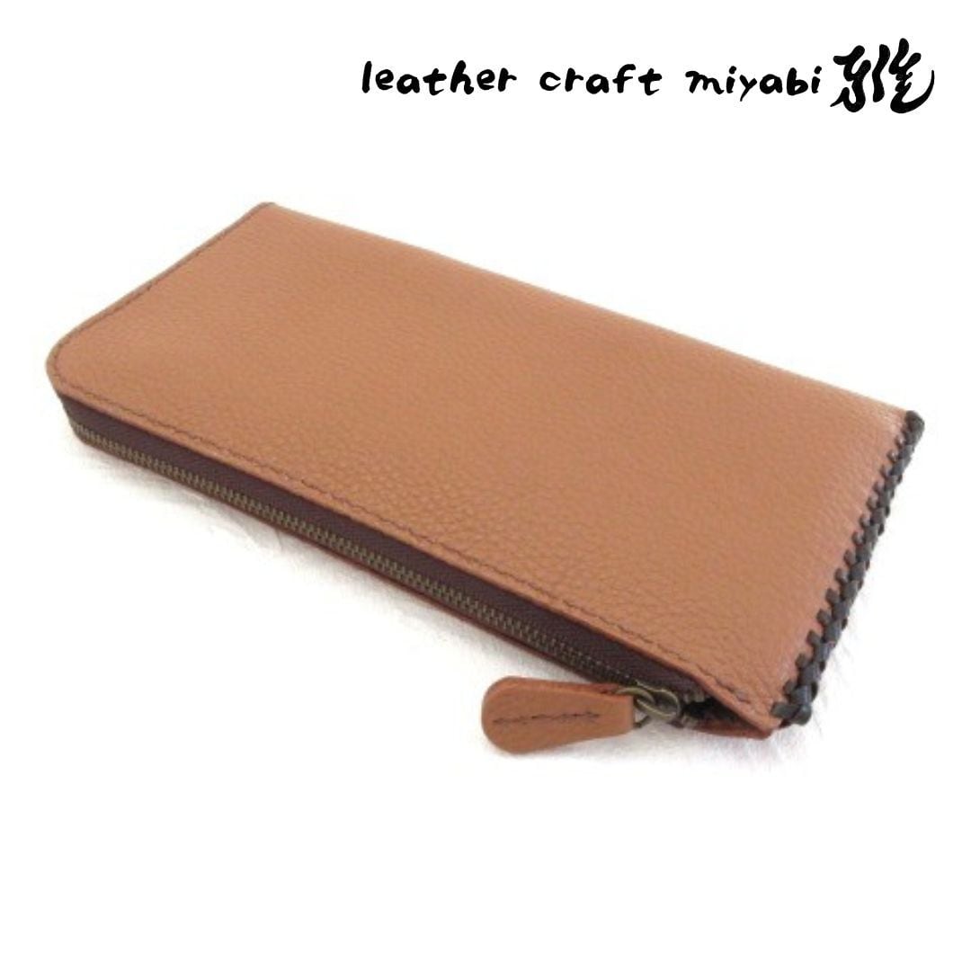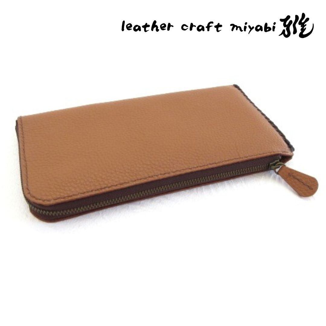 手縫い♪通帳もスリムに入る《牛革》L字ファスナーロングウォレット・シュリンク・ライトブラウン026