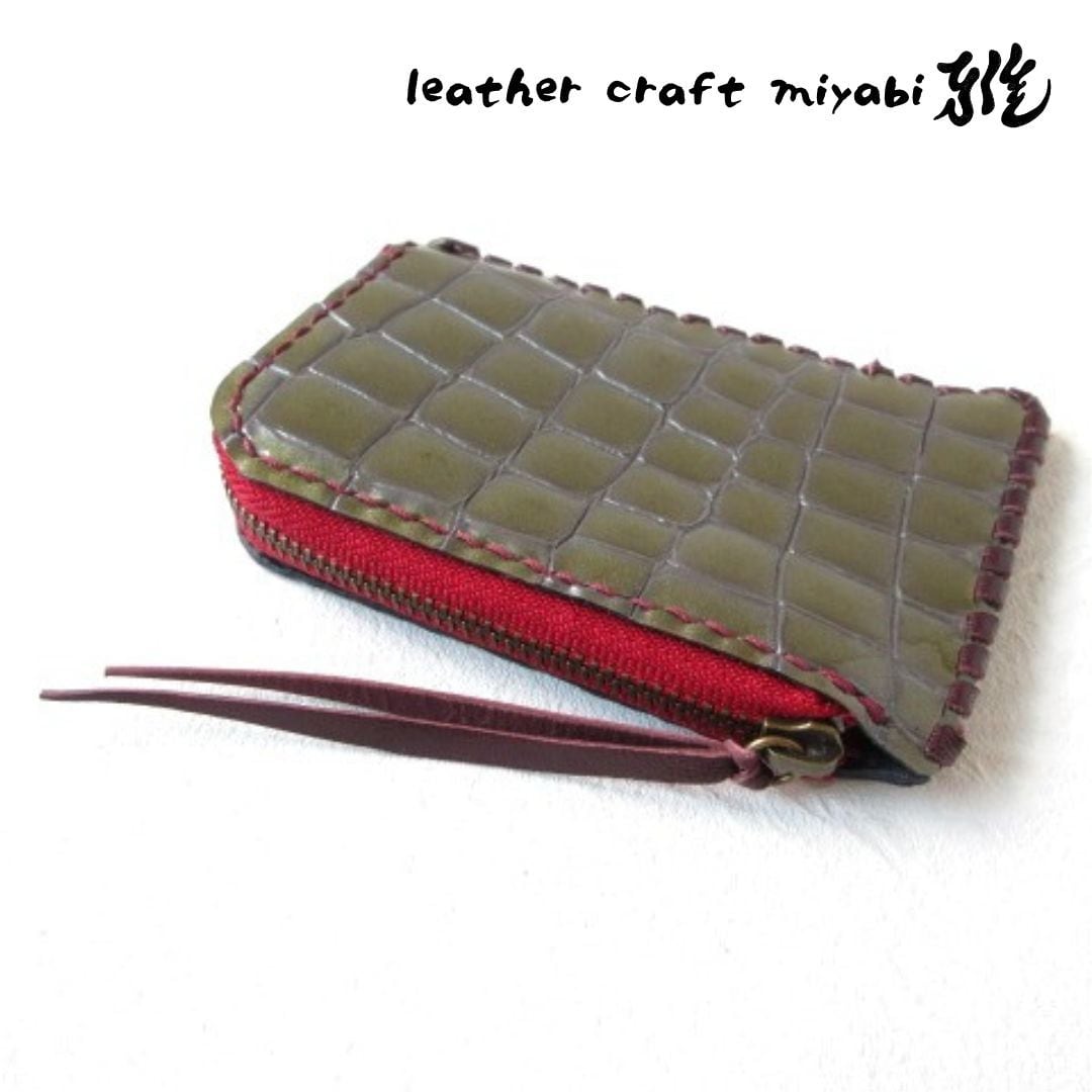 スリムタイプ♪《エナメル》L字ファスナー・コインケース・型押しクロコ・0030