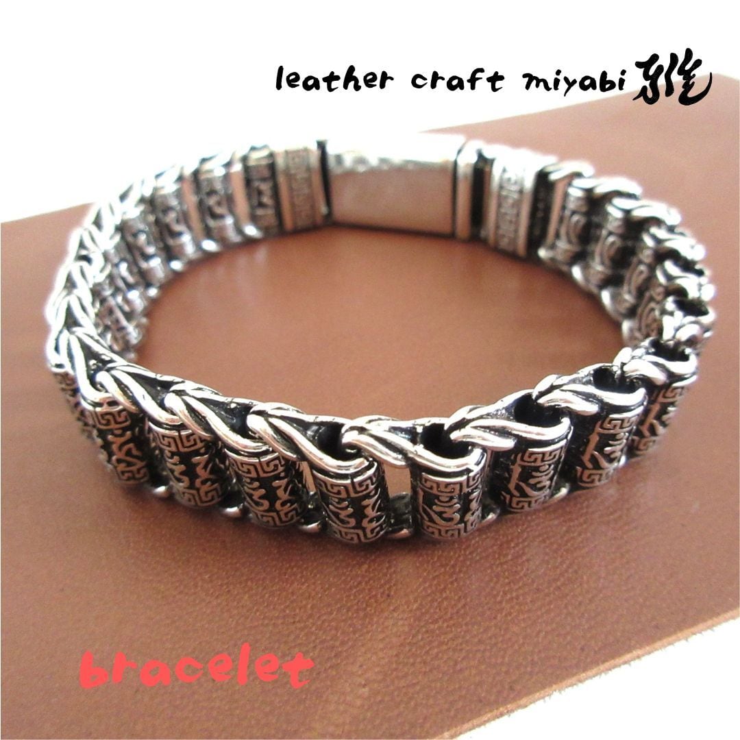 エンボス梵字!メタルシリンダー・チェーンブレスレット【新品】バイカー、ビンテージ、レトロ、ブレスレット、チェーン