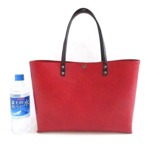 ワイドなA4対応サイズ♪《牛革》シュリンク・レッド×ブラック・ハンドソーイングトート・0402