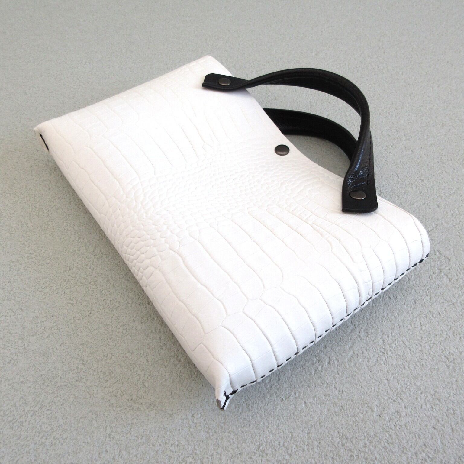 手縫い☆そのまま持っても映える♪《牛革》バッグインバッグ・型押しクロコ・ホワイト×ブラック・096