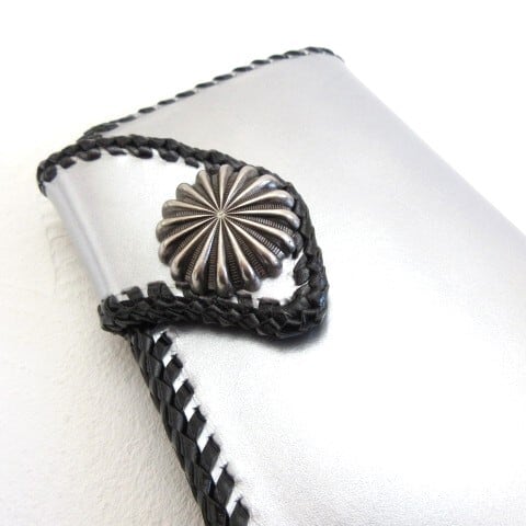 ☆シルバーのコーティングレザーを使い外周をレザーコードでグルっとかがって仕上げた贅沢なウォレットです♪