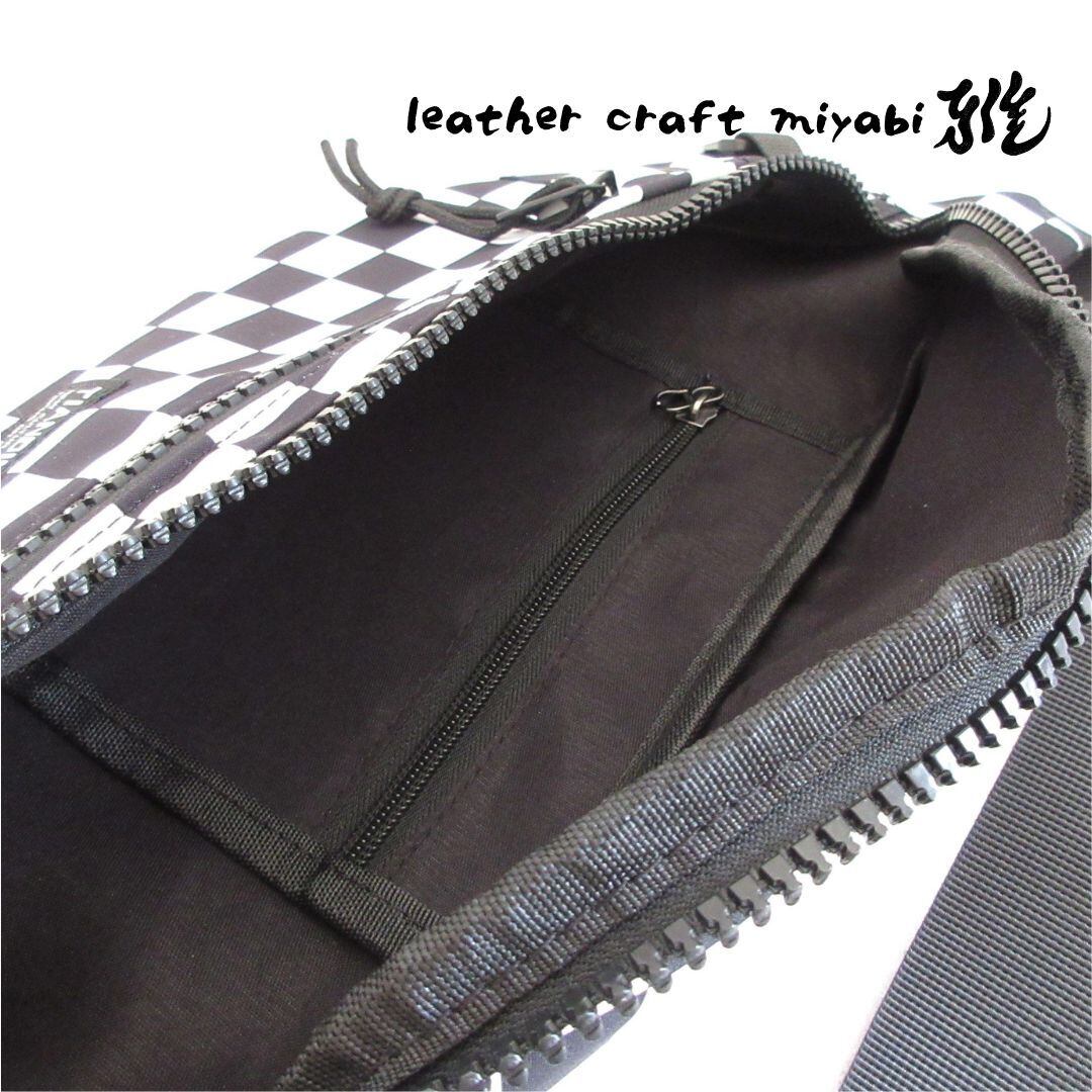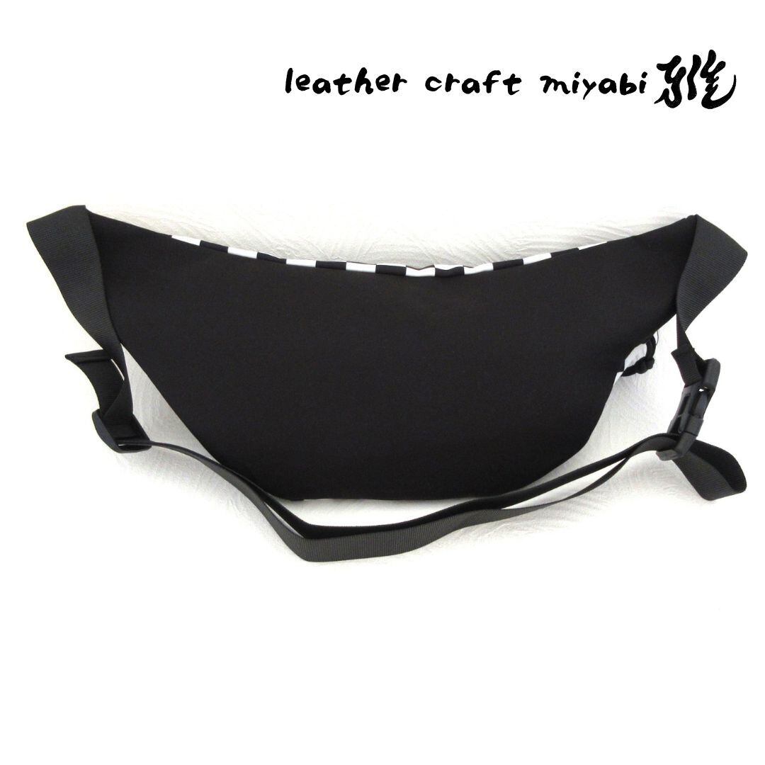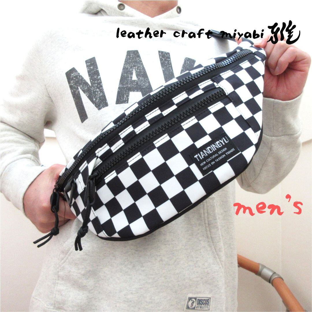 〇バイクと相性が良いブラック×ホワイトのチェッカー模様が映えるボディバッグです♪